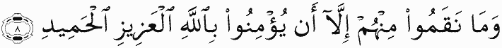 And they resented them not except because they believed in Allah , the Exalted in Might, the Praiseworthy,