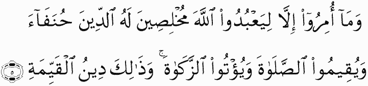 And they were not commanded except to worship Allah , [being] sincere to Him in religion, inclining to truth, and to establish prayer and to give zakah. And that is the correct religion.